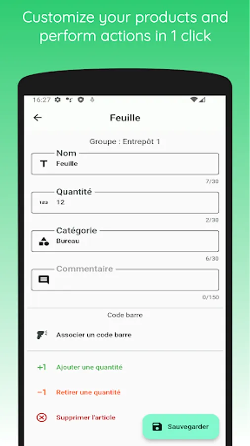 - Associate a barcode with your product, to allow you to scan barcodes using the camera and find your items easily