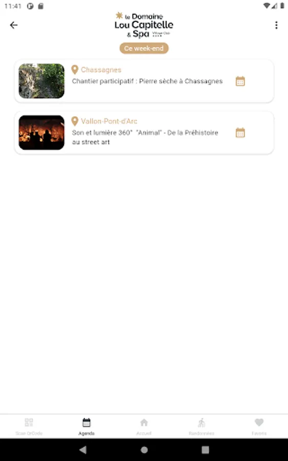 For activities and entertainment, navigate on the new tourist information touch table and keep, by simple scans of QR codes, all the activities, visits, hikes... Create your selection of activities and organize your stay or your day in and around the estate. Bonus: events calendar, real-time geolocation, nearby points of interest. These same features are available without using