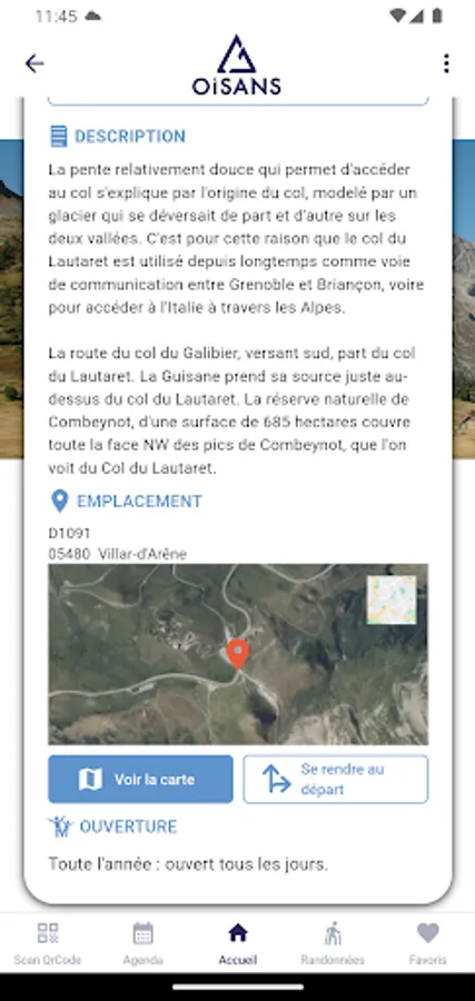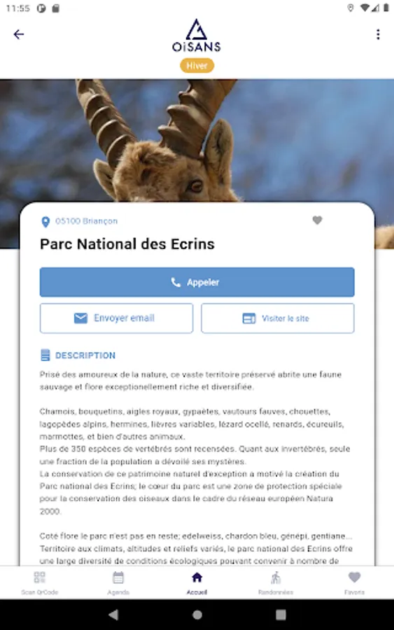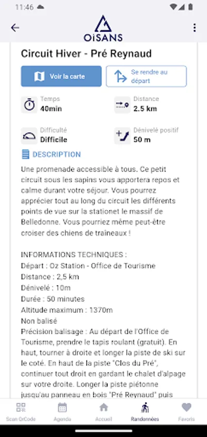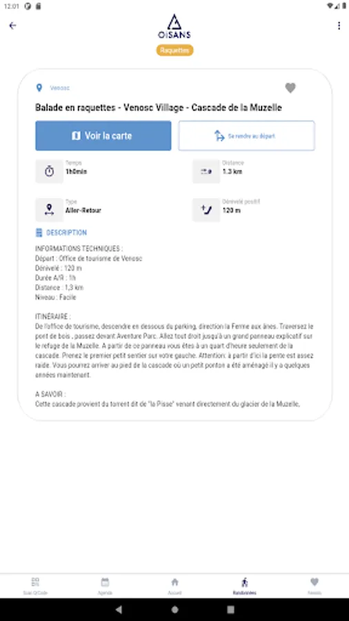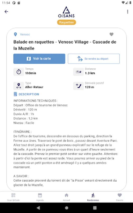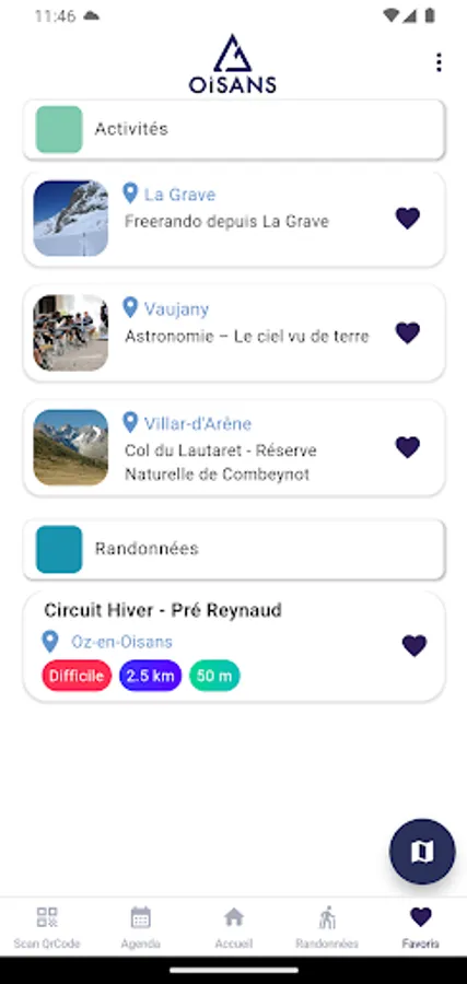 By simply scanning QR codes, the mobile application allows you to create your own selection of activities (your favourites) and define a typical day for visiting Oisans.