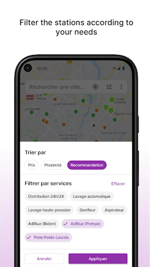 • Location, optional, to show you the stations closest to your position. Don't want to share your location? A search by city or address is available 😉