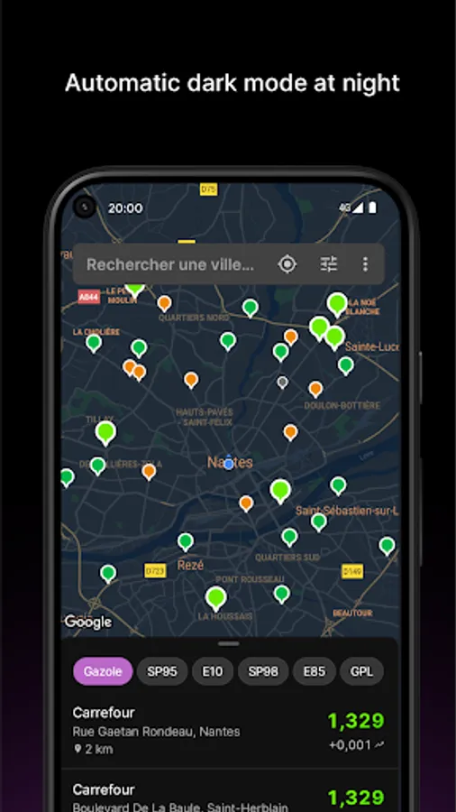 Fuel data is continuously updated and comes from Open Data (https://www.prix-carburants.gouv.fr and https://www.openstreetmap.org).