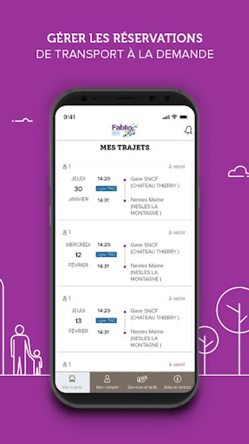 The FABLIO transport on demand application: an easy and quick to use app that connects you to the network of the Agglomeration Community of the Château-Thierry Region for personalized trips with complete peace of mind.
