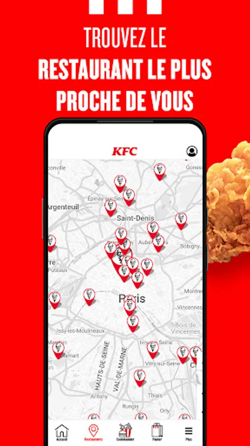 You can find the address of all KFC restaurants on the application. Place your order in the restaurants and eat there, or take away in Click & Collect. You have the choice !