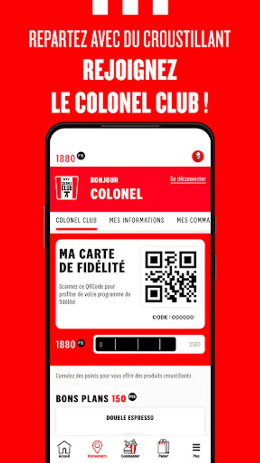 We have developed a loyalty program designed just for you. It allows you on the one hand to become a VIP member of Team Colonel and on the other hand to benefit from loyalty advantages, with many gourmet rewards.