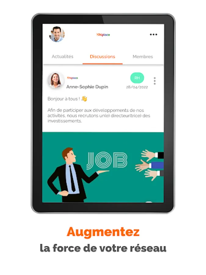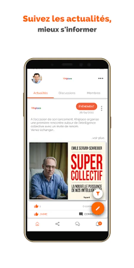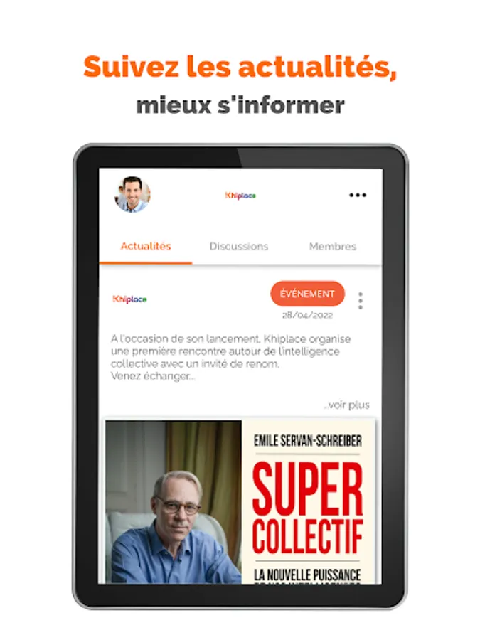 Discuss, discover collective projects and discussion groups, connect and follow exclusive information from Khiplace. Find members of the community and develop your network in your new application!