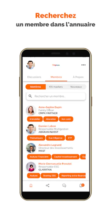Easily search for a member of the community by surname, first name, company, skill... The essentials to facilitate your exchanges!