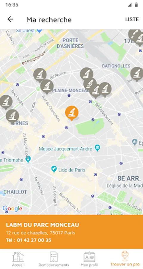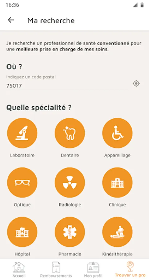 - Geolocate health professionals (opticians, dentists, radiologists, etc.) with whom we have third-party payment agreements