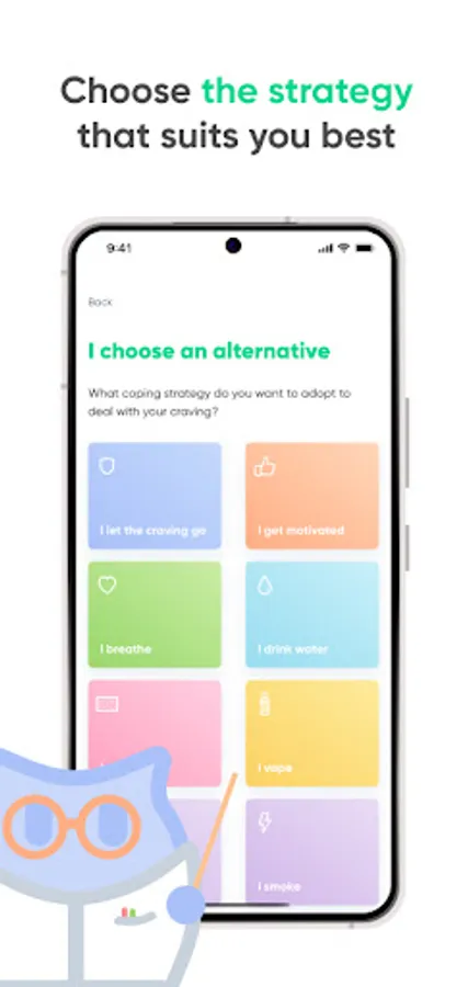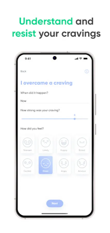 - Tell Kwit when you have a craving and find the right solution to fight it