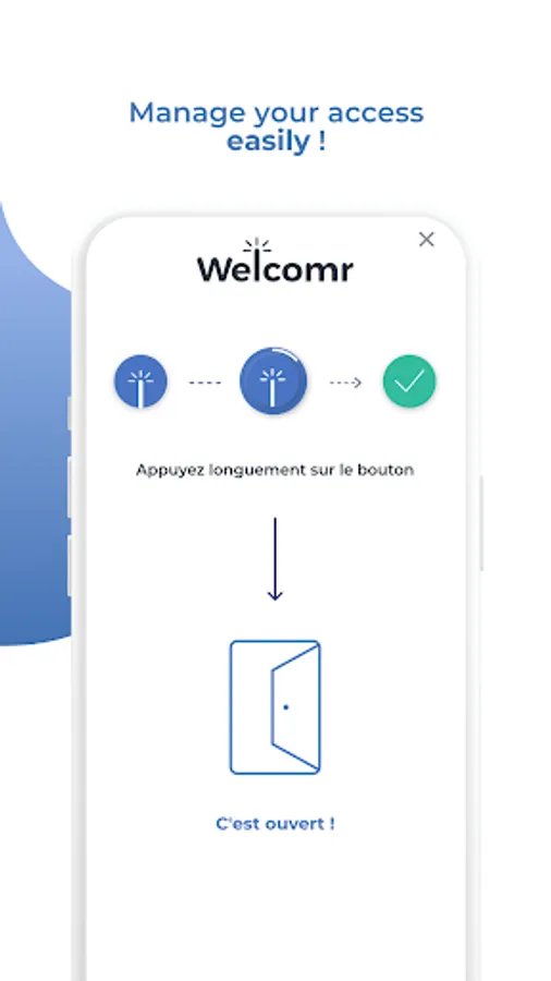 This application requires the installation of a Welcomr controller on every door and a personnal access authorization.