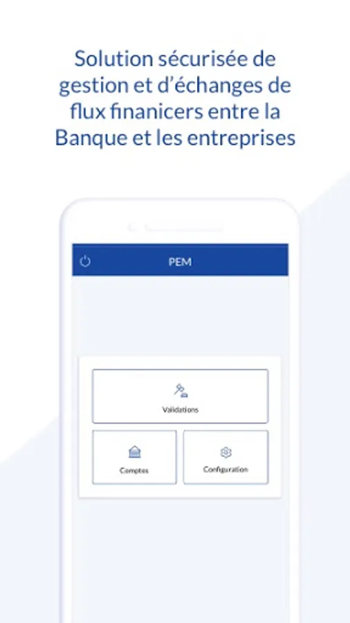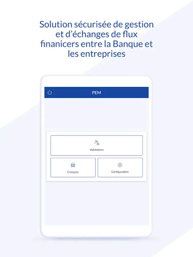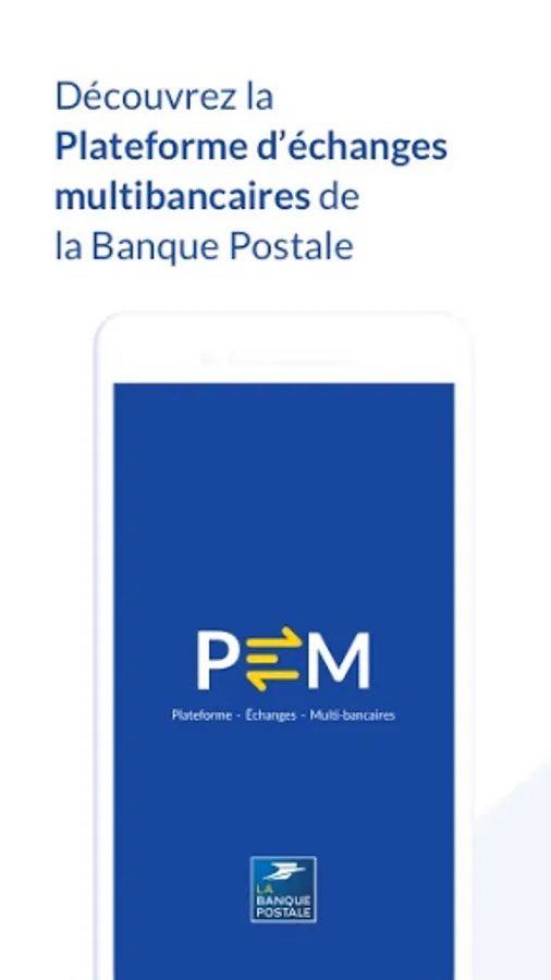 The "Multi-banking Mobile Exchange Platform" (PEM® on Mobile) application is the mobility supplement to the PEM® (Multi-bank Exchange Platform) service from La Banque Postale. It is reserved for professional, corporate and institutional customers who have subscribed to the mobility option of a PEM® contract. The identifier and personal code are specific to PEM and required to access the service.