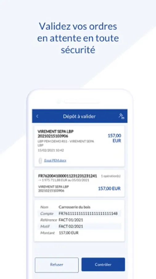 - A validation circuit for your banking transactions, prepared by your employees, for immediate consideration