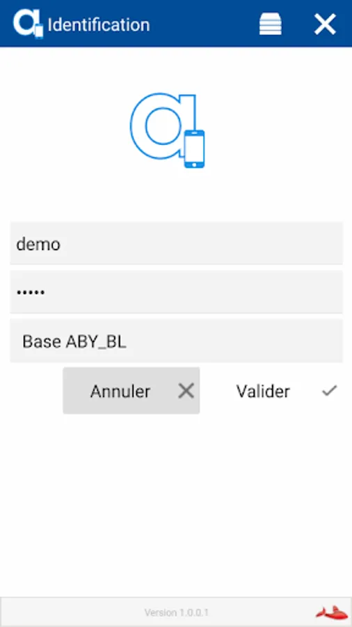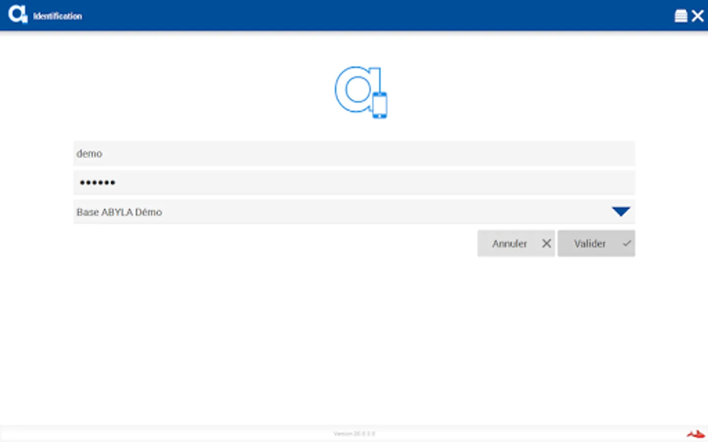 The application when installed by default on your smartphone will offer a connection to a Abyla demo server.