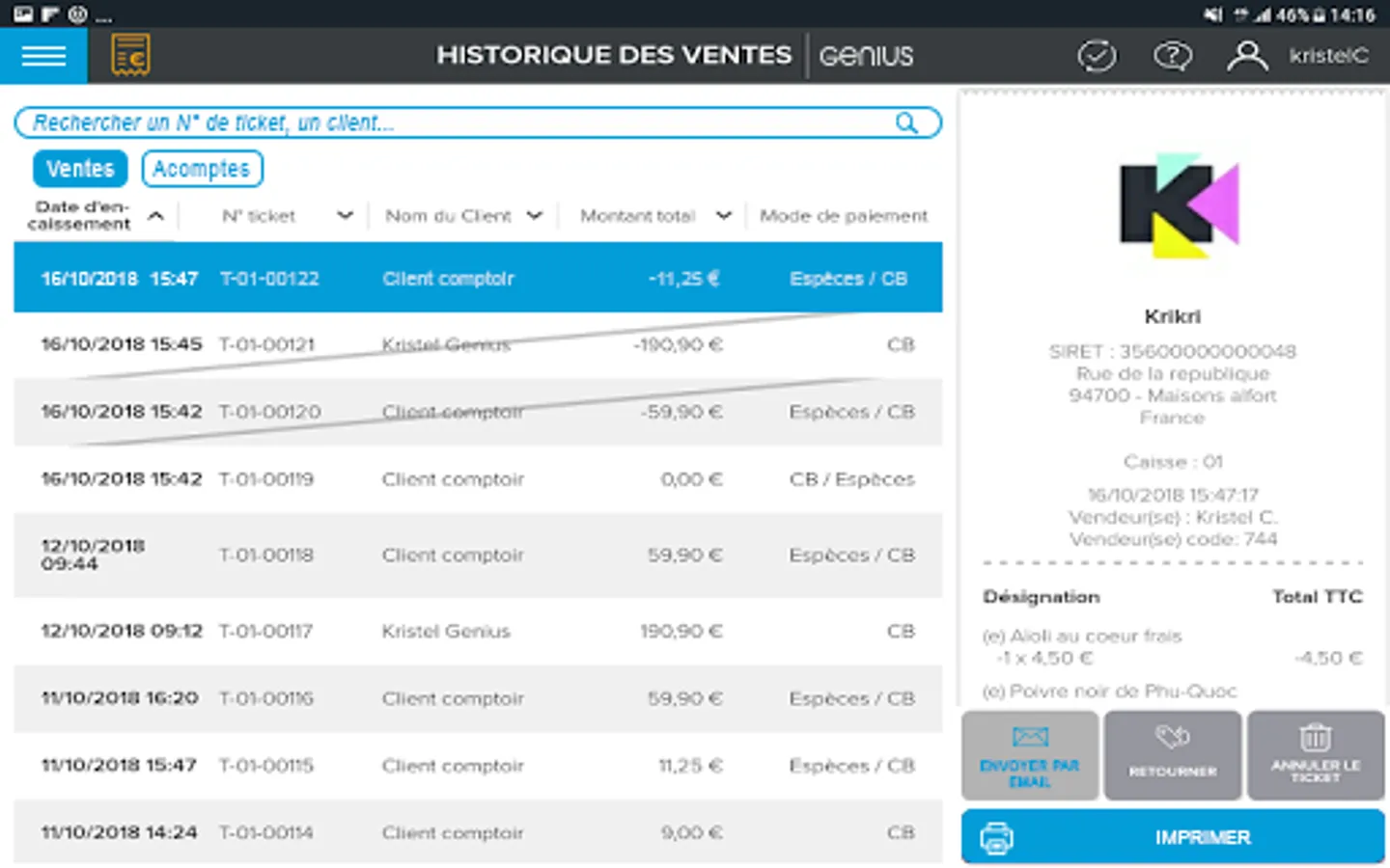- La caisse tactile Genius fonctionne aussi en mode hors connecté.