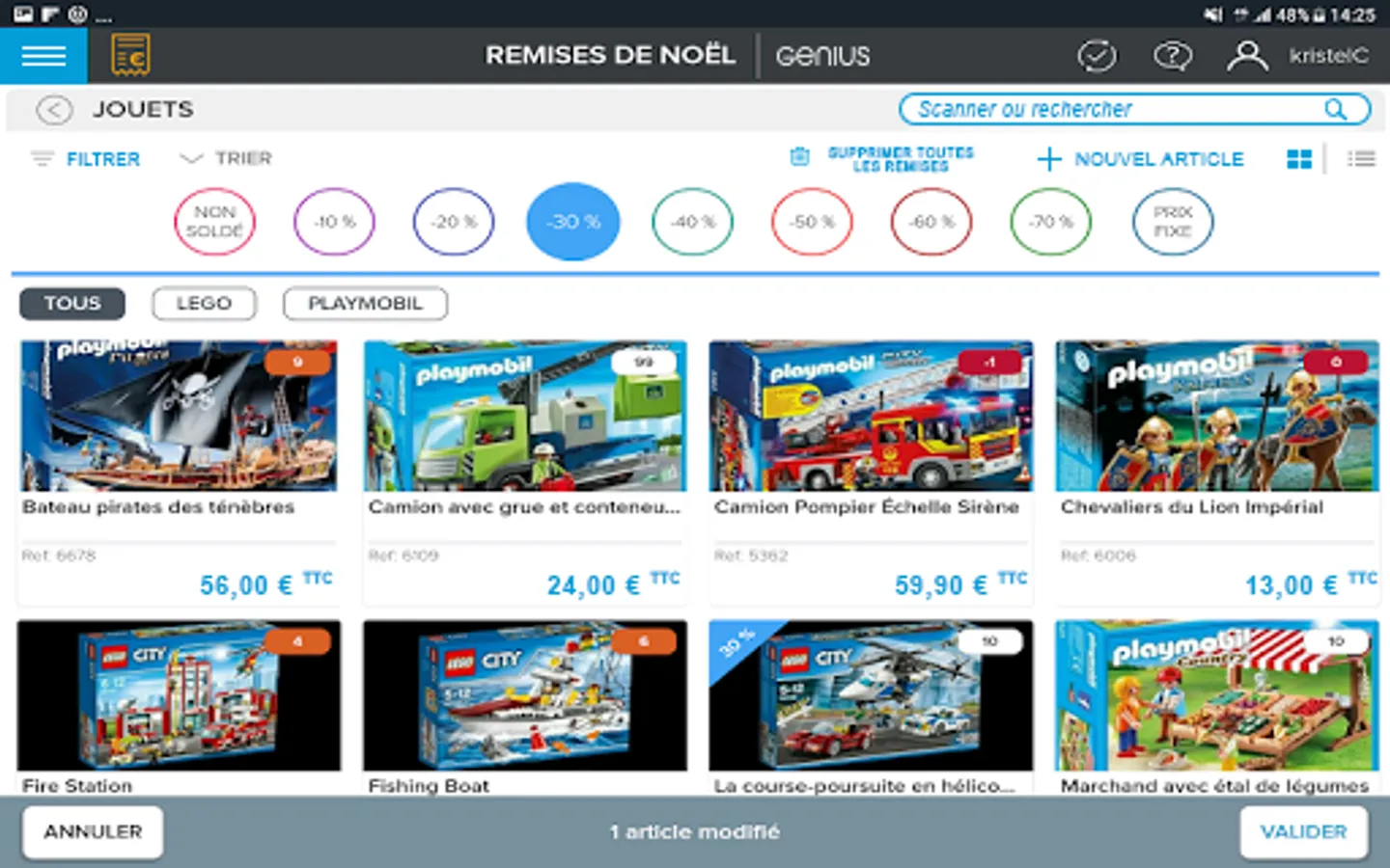- Appliquer simplement ces démarques ou remises à un ensemble d’articles que vous définissez, et ajuster- les selon les résultats obtenus