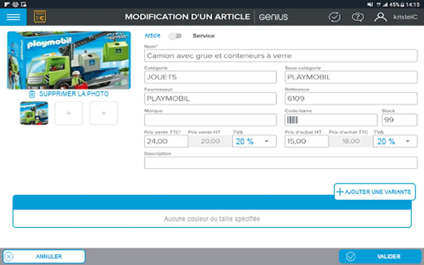 - Créez votre base articles en l'important depuis votre fichier excel ou depuis directement depuis votre tablette