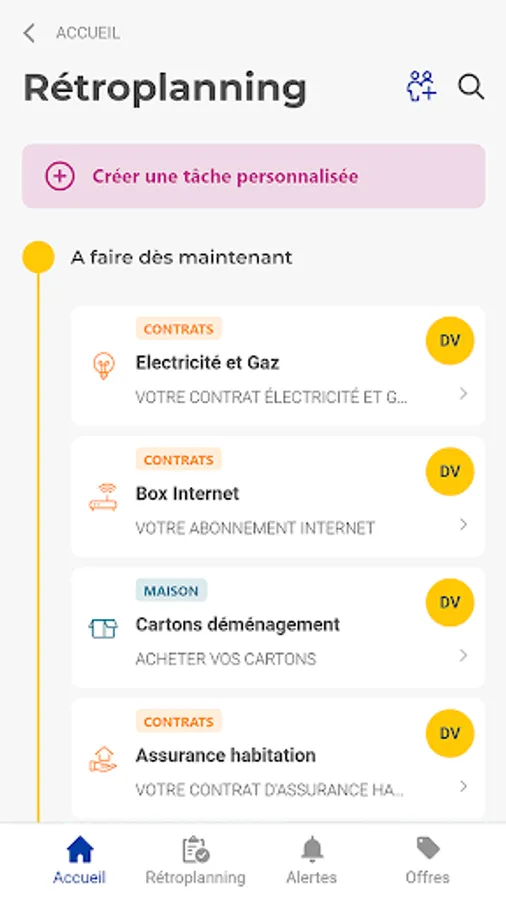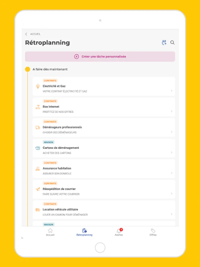 * Create an unlimited number of personalized tasks for all your personal tasks (example: collect the spare keys from Mrs. Dupont): no more lists on paper that get lost, you find everything for your move in the same place, accessible everywhere and all the time. time with your smartphone or tablet.