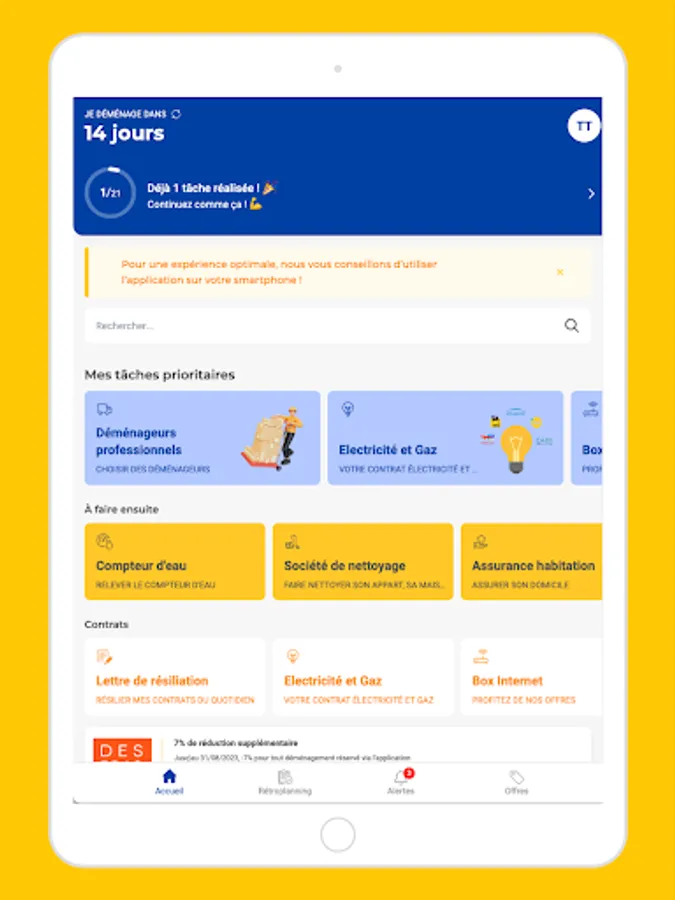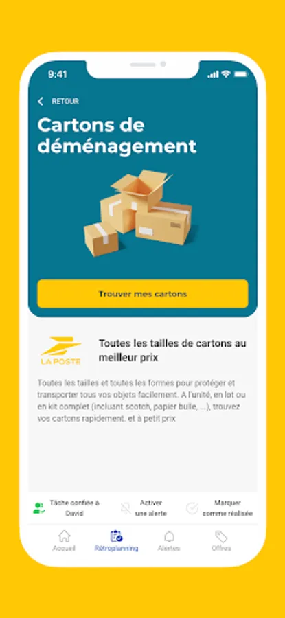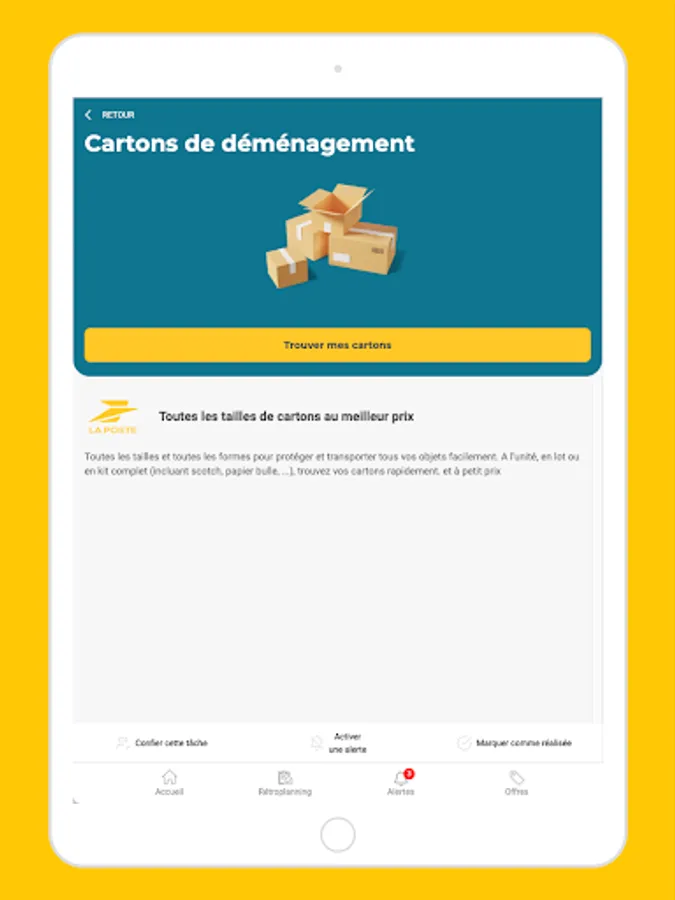I'm Moving with La Poste is the 100% free application that simplifies your move. Organize yourself easily thanks to the complete list of tasks to be carried out (procedures, contracts to be managed, etc.) already prioritized, tailor-made retroplanning, free alerts by e-mail and/or SMS and much more! You too, simply choose to move!