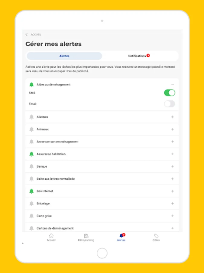 * Activate alerts by e-mail and/or SMS for all the tasks of your choice. Like your boxes, your life is busy, our alerts (useful and always free) allow you to think of everything without thinking about it. Something to stay calm!
