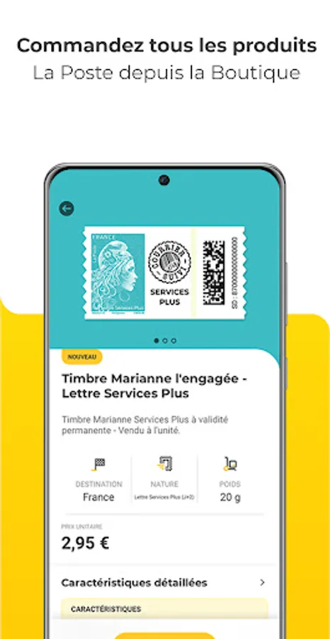 The La Poste application is also an online store that allows you to buy our postage solutions from your mobile Marianne stamps, prepaid envelopes, and tracking stickers individually, in batches or in booklets