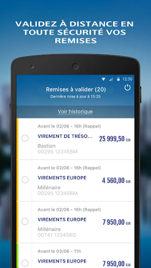 Be alerted of order remittances to be validated. Check and electronically validate your order remittances in a secure manner using the LCL m-Identity service, and consult the history of remittances already validated.