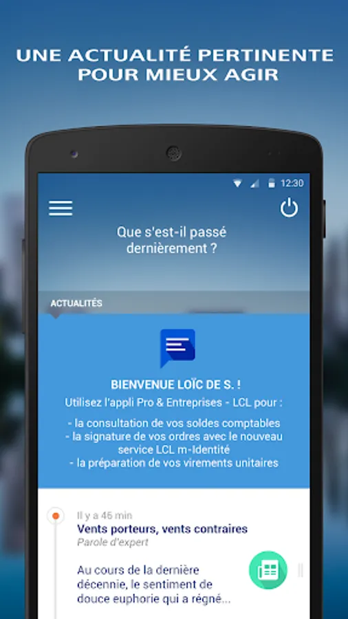 With the Pro & Entreprises LCL application, your company's accounts can be accessed securely, anywhere and anytime.