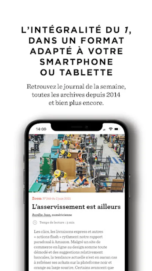 In this application, find the entire 1: the newspaper of the week, the archives since 2014, all audio and video content, special issues published and to come as well as unpublished daily articles and content selected to measure.