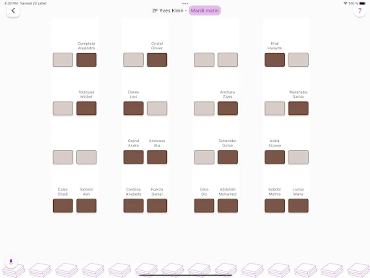 - Free plan: place the tables of your students freely in the room according to your needs and if necessary place several on the same square or round table. In this plan you can find the placement of your students if necessary by clicking on the search icon