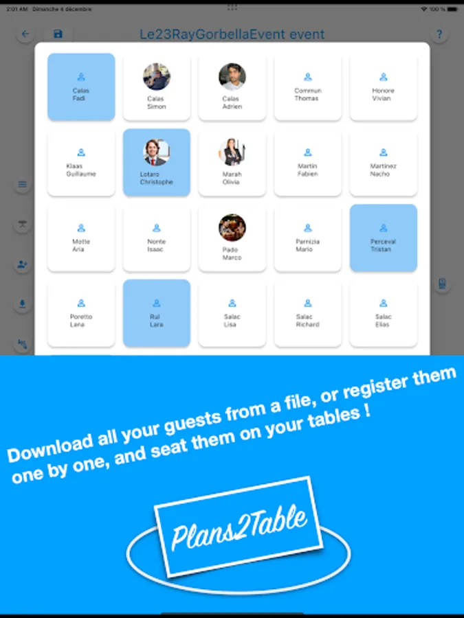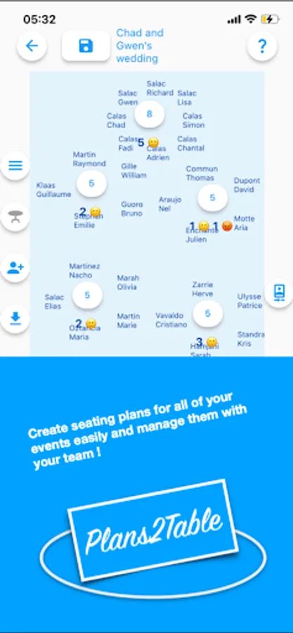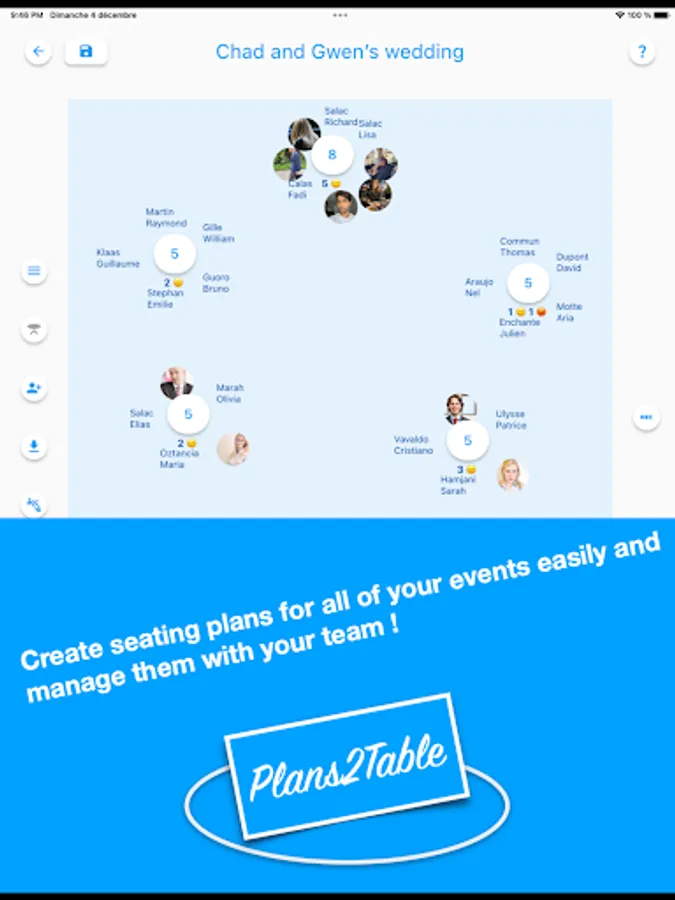 Create seating plans for all of your events : wedding, business lunch, etc…