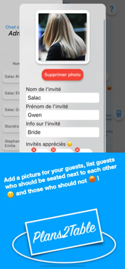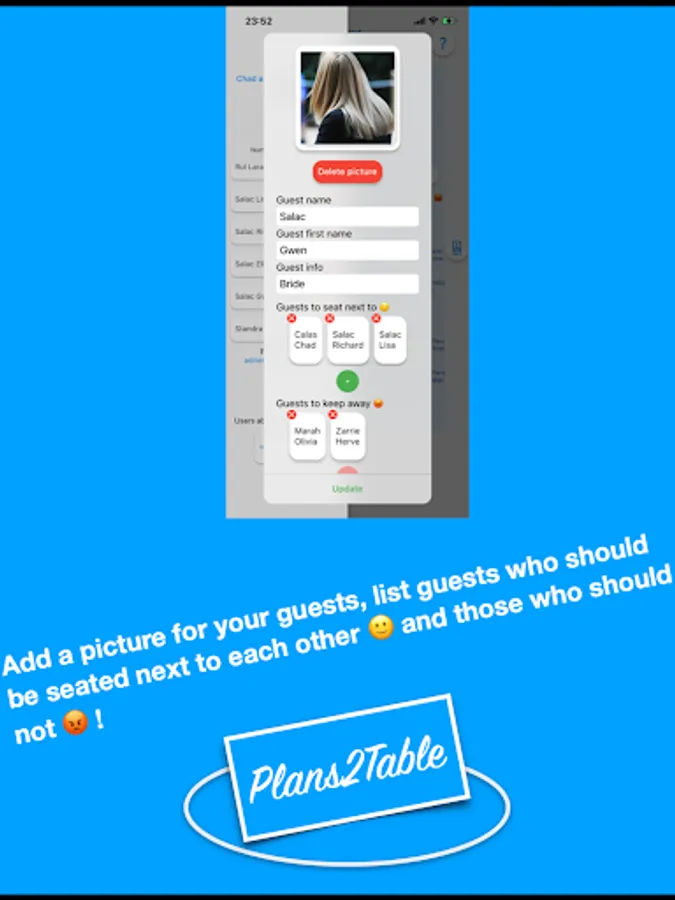 For all of your guests, you can list guests who should be seated next to each other and those who should not !
