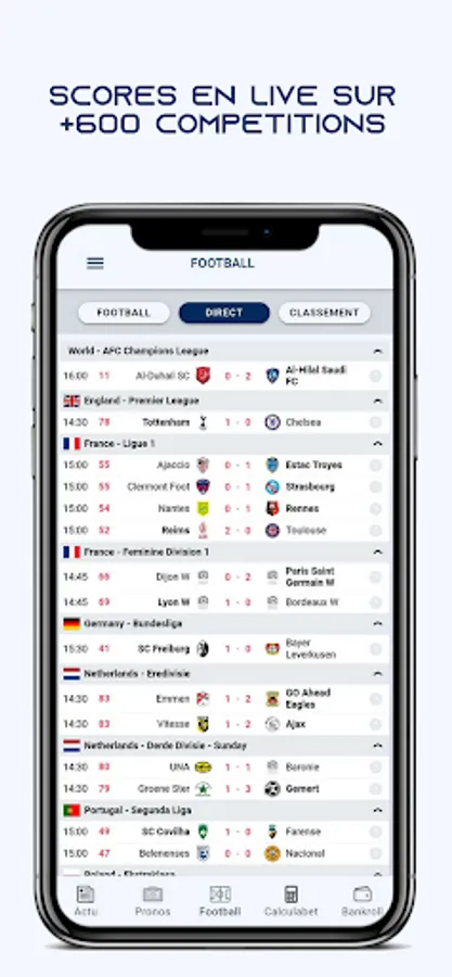 With the live-score, you have access to essential information. Just select your football matches, teams or competitions from the over 830 we cover.