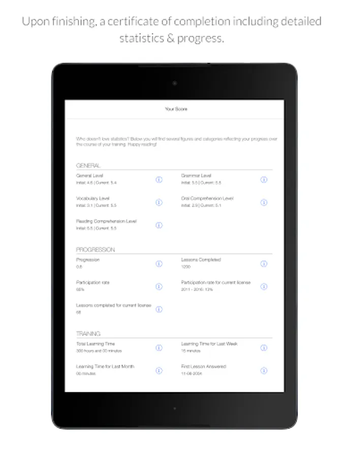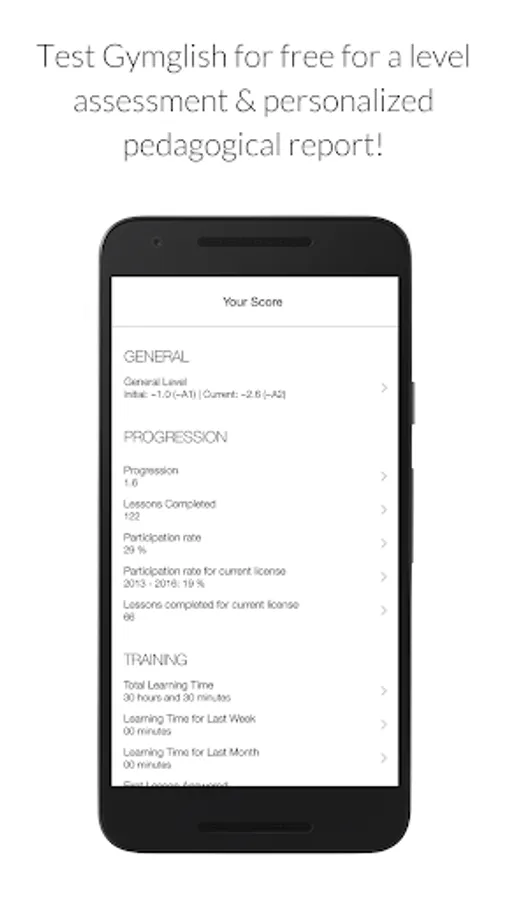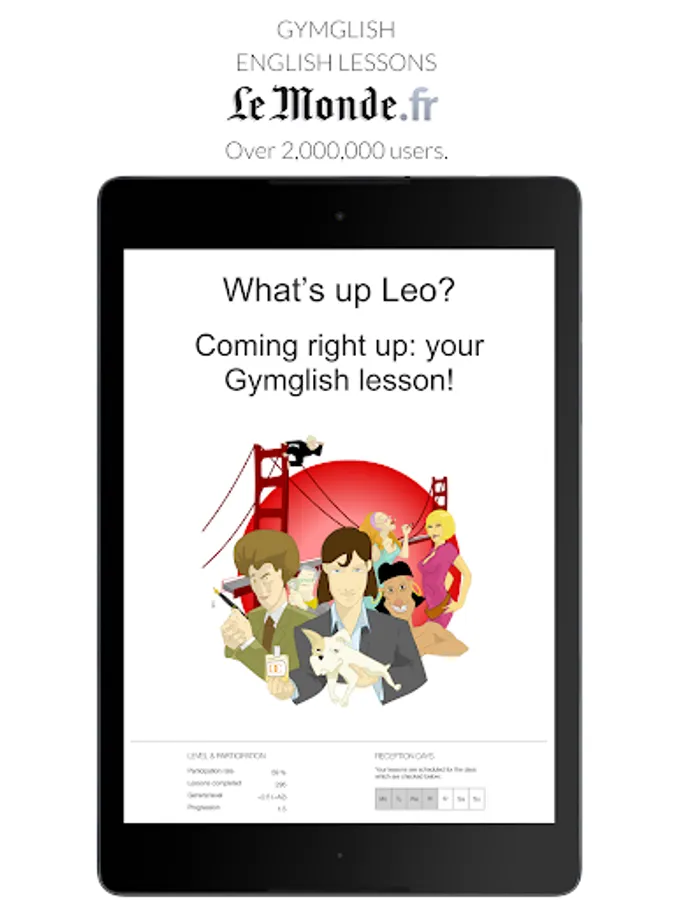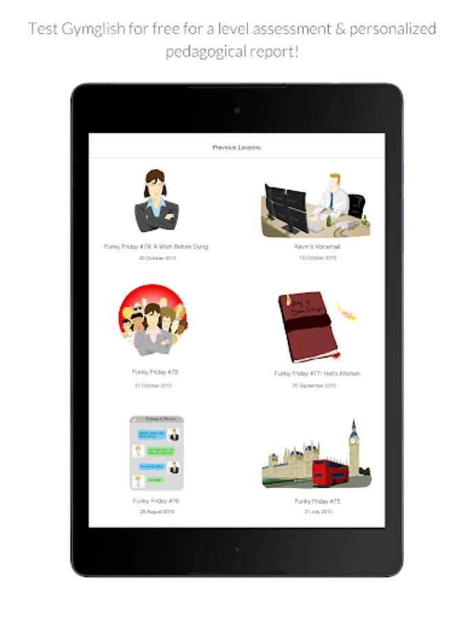 Gymglish provides daily personalised English lessons. Test Gymglish for free and get a level assessment and a personalized pedagogical report!