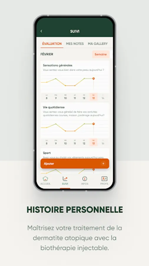 DAppli provides you with real support in monitoring your atopic dermatitis. Regular assessments, photos and notes are included in the diary to allow you to find them easily and help you prepare for your consultations before each of your medical appointments.