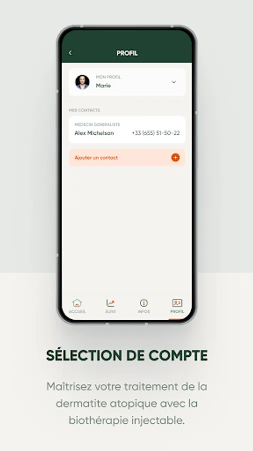 This application was designed in partnership with the French Eczema Association and in collaboration with Dr. Ziad Reguiaï, dermatologist at the Courlancy polyclinic in Reims-Bezannes, and Mrs. Maria Teixeira-Ribeiro, nurse in the Dermatology department of the Center hospital in Cannes.