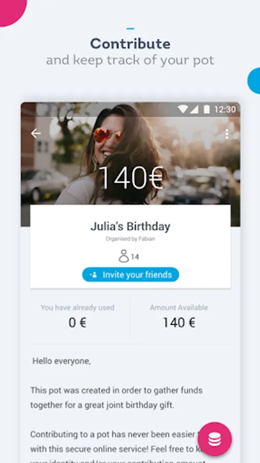 A group gift, a birthday, a farewell, a bachelor party, a weekend with friends, or other events for which "Le Pot Commun" can help you collect the contributions.