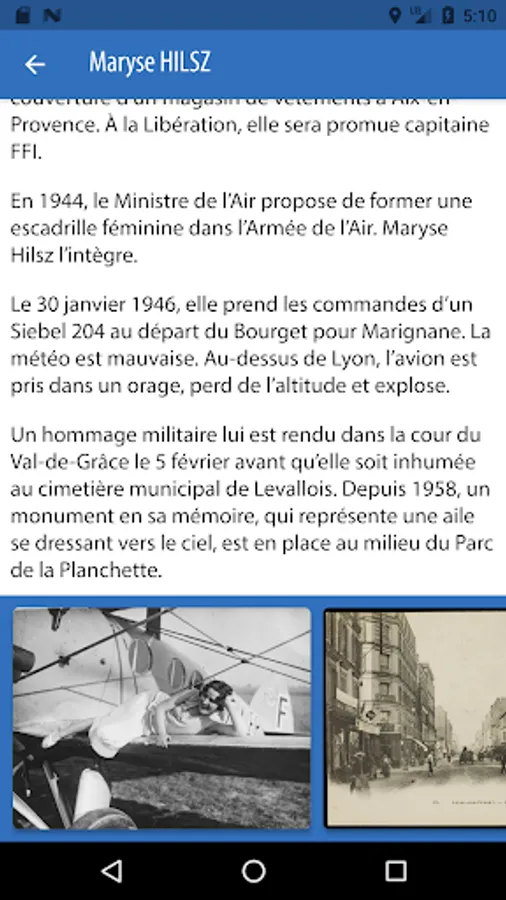 The "Levallois Mémoires" application invites you to (re) discover your city and its history through exceptional and for some unpublished documents, geolocated on an interactive map. With just a few clicks, you can access period photos and visuals, videos and many explanations of the lives of the women and men who made the history of Levallois. Themed routes, podcasts and virtual tours allow you to explore the city and take a fresh look at our daily environment. The opportunity also to meet personalities with extraordinary fates, captains of industry, fighters, artists and sportsmen who have all contributed to the fame of Levallois, from Gustave Eiffel to Léon Zitrone via Maryse Hilsz and so many others.