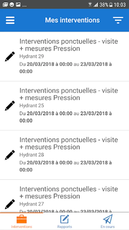 Application for creating intervention reports on hydrants