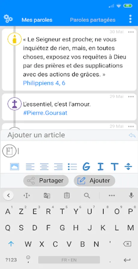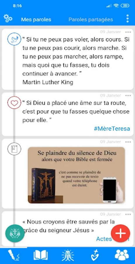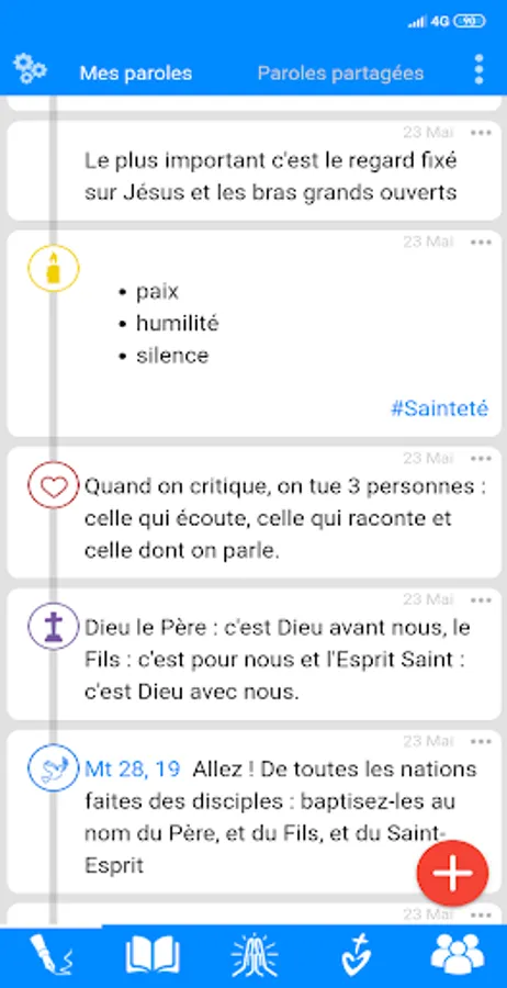 Because a brother leaning on another brother is an impregnable citadel, the application offers you to form prayer groups to build you up together. People who do not have the application will be able to access content shared by public groups.