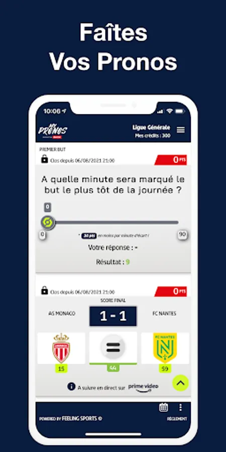 The official goal of MyPronos presented by Betclic is to accumulate a maximum of points thanks to your predictions made on the matches of each day of Ligue 1 Uber Eats and finish in the 1st in the rankings to win many prizes!
