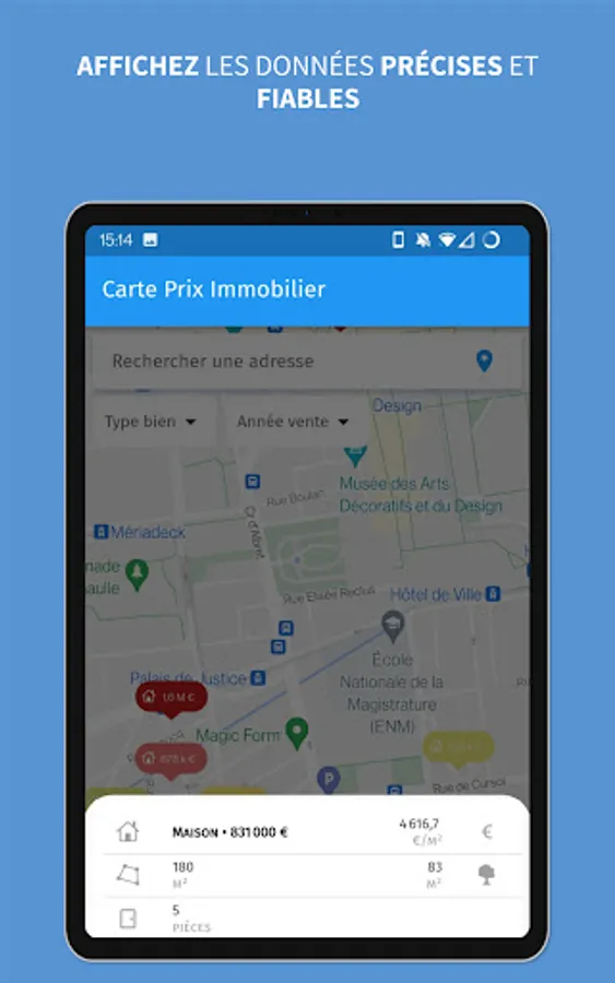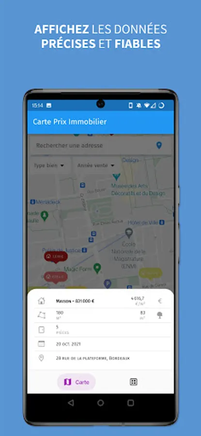 Use the interactive map to search among 5 million properties sold in France. Ideal for knowing the market price in your area of research.