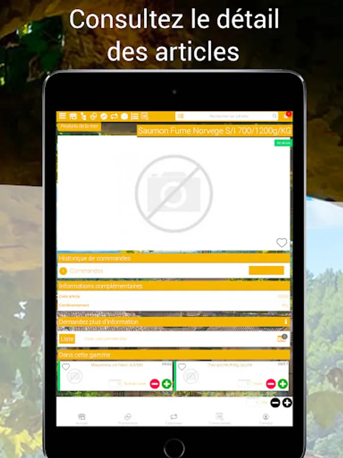 Easily find your products and personalized conditions (Mercuriale, Promotions), your delivery dates and addresses as well as all the ranges.
