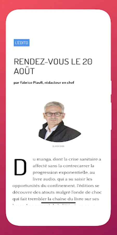 - A new generation e-reader including adapted reading on mobile and tablet of articles