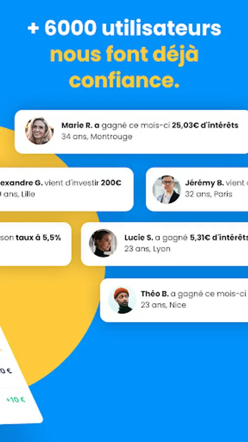 You can follow at any time the total amount invested, the interest earned, the new assets acquired. And don't forget the question of the week that allows you to boost your performance and earn up to 6% per year.