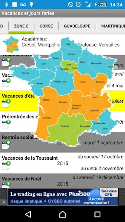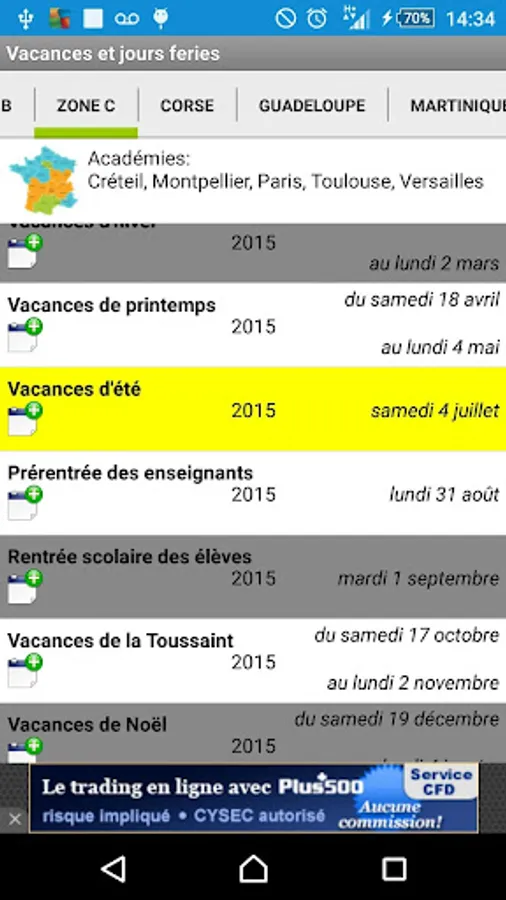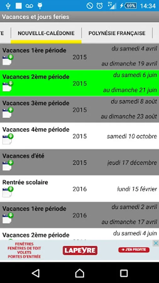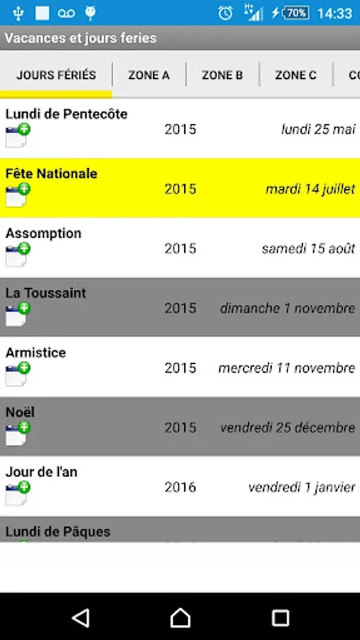 By clicking on the small icon '+', you can export the holidays to your Android calendar!