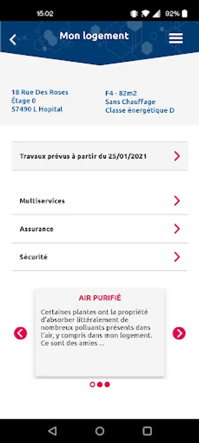 - Directly access the essential sections: Rent / charges, Housing, Procedures, Contacts)
