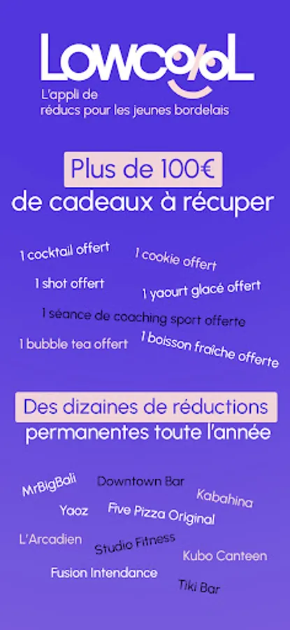The Lowcool app gives you access to more than €100 in gifts and dozens of discounts in Bordeaux!