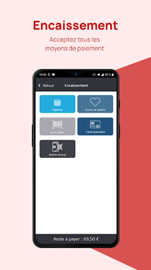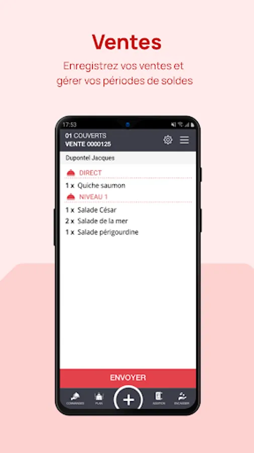 Easily register your orders at the table or at the counter, efficiently manage your queues, apply offers, associate a sale with a customer, share your bills and print expense reports, etc...
