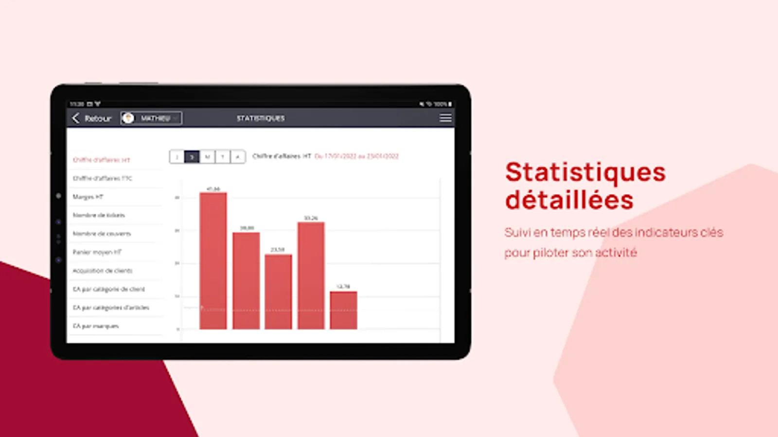 Consult the statistics of your restaurant: turnover, number of covers / service, average cover, average basket