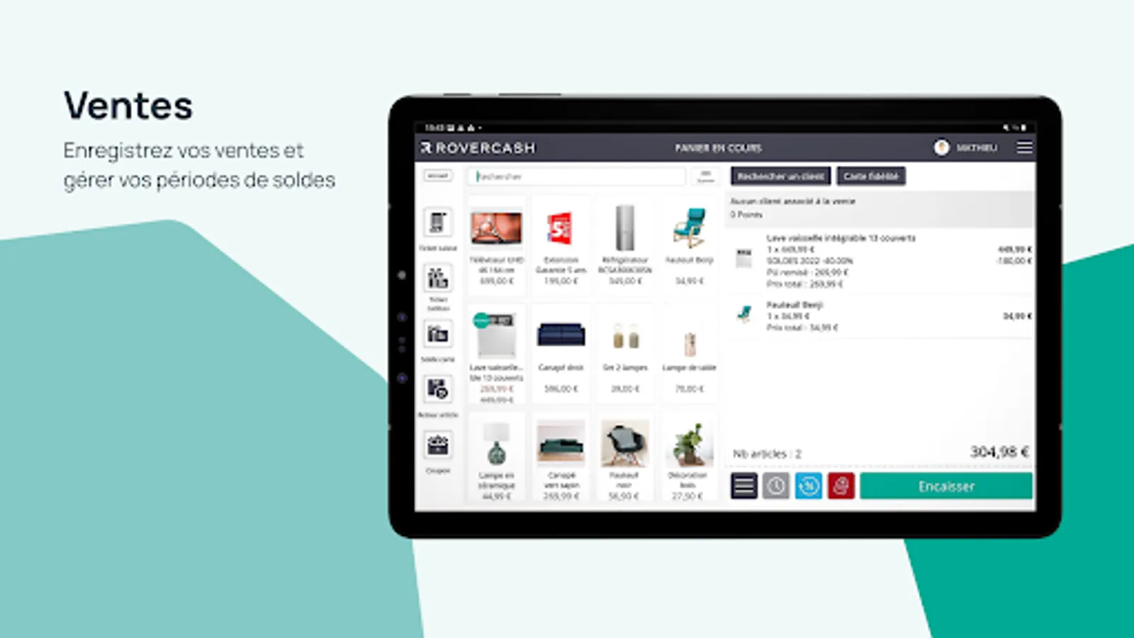 RoverCash replaces your traditional cash register by making your tablet or smartphone a real management tool.