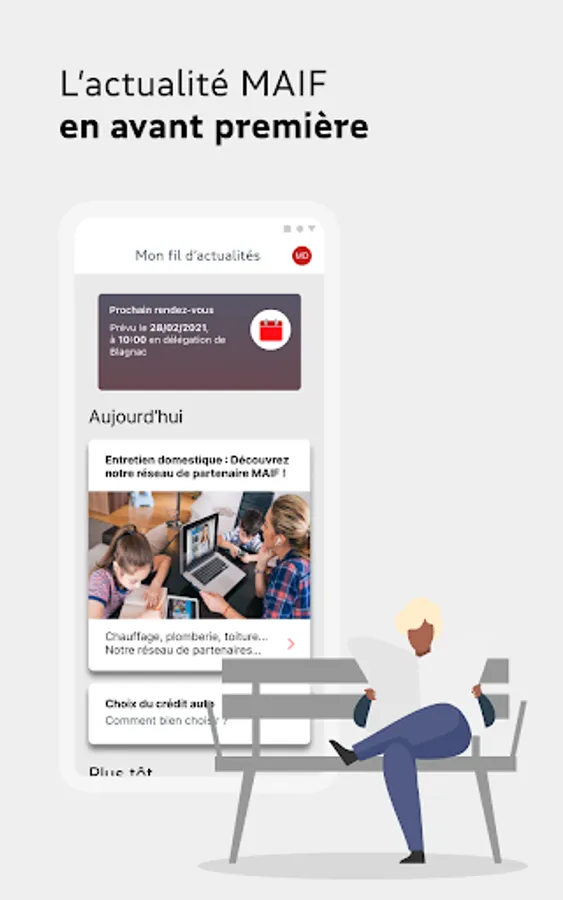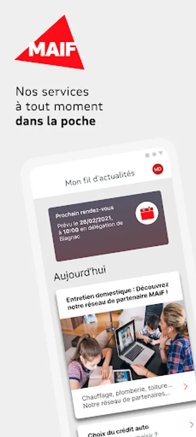 As soon as you open your application, you will find advice on insurance, information on your rights and contracts, but also MAIF news on its commitments, its actions as well as on initiatives with positive impacts for people and the planet.