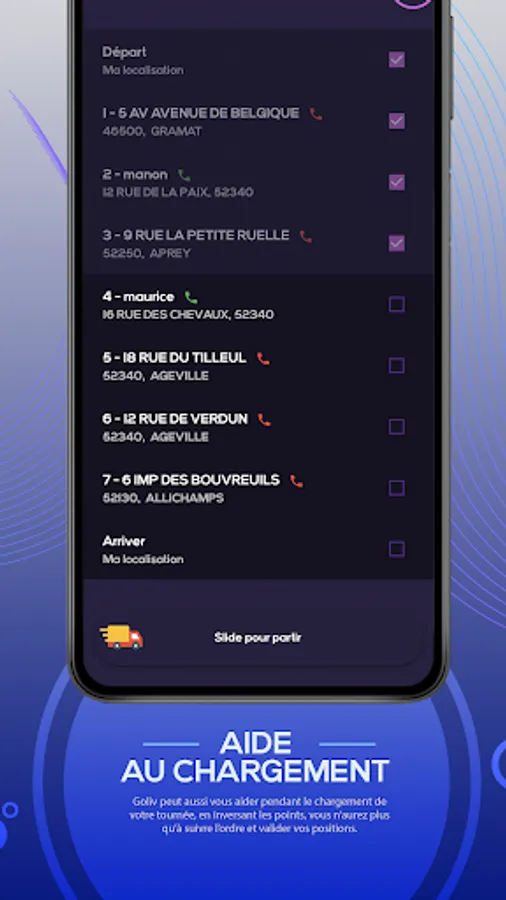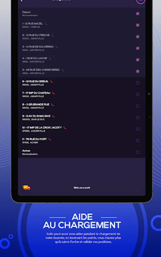 Optional - If necessary Goliv offers you a loading assistance system, the reverse application has turned you on, all you have to do is follow the loading order, and validate one after the other your address .